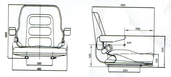 座椅為叉車及其它工業(yè)車輛設(shè)計的經(jīng)濟型駕駛員座椅。它沒有懸浮裝置。但其座背、靠背均采用真空發(fā)泡一次成型技術(shù),便于拆換。
